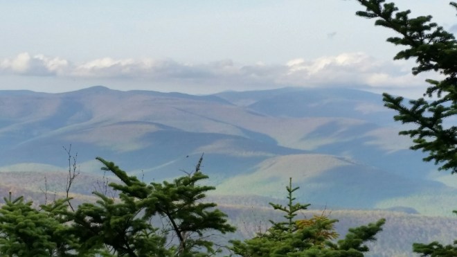 By 7:15 AM I was hiking a steep trail along the narrow ridge that leads to the summit of Peekamoose Mountain.  An hour and half later, I stepped off the trail and into a forest of red spruce and Balsam fir, the ground covered in needles and dead branches.