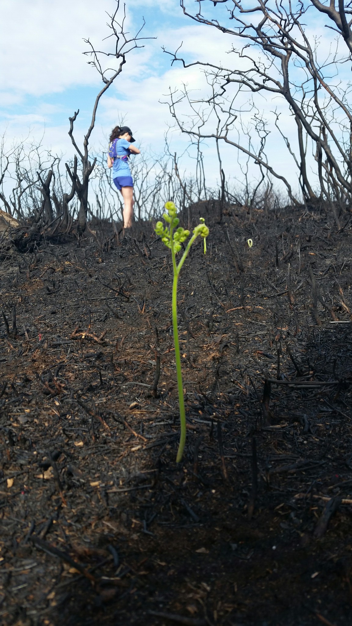 We returned to our cars, legs covered in soot. I was relieved: there would be no obstacles for the runners in the race. Instead, they would have the special experience of running through a zone of recent and ongoing change. I resolved to revisit the ridge in the coming weeks, to witness as much of the rebirth of nature as I could observe and understand.
