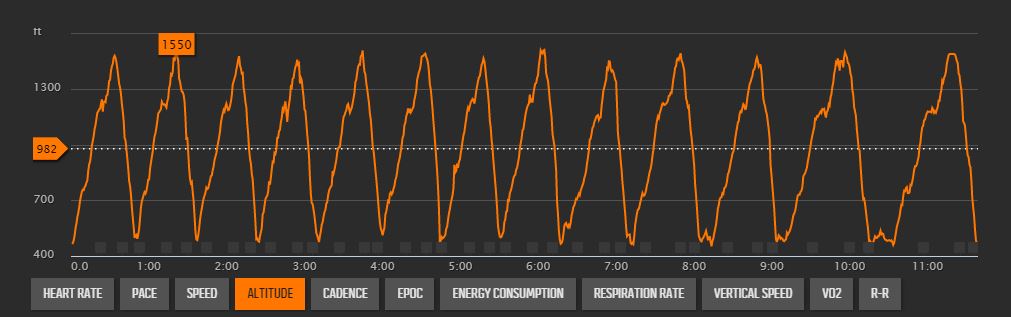 Running with the Devil is a timed race that takes place on a 3-mile loop at the Mountain Creek Ski Resort in New Jersey. Each loop takes you up 1,100 feet to the top of a ski slope, and then back down again. The average grade is 14%, but in some sections it approaches 30%. The goal is to do as many loops as you can within a 12-hour time-limit.