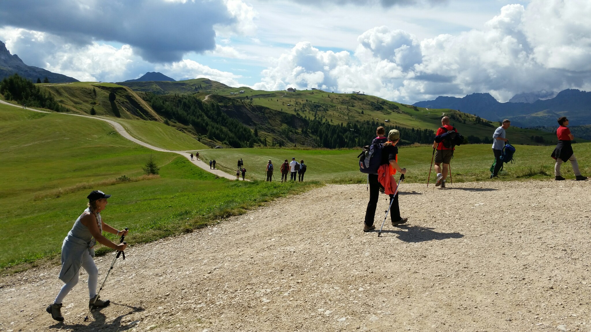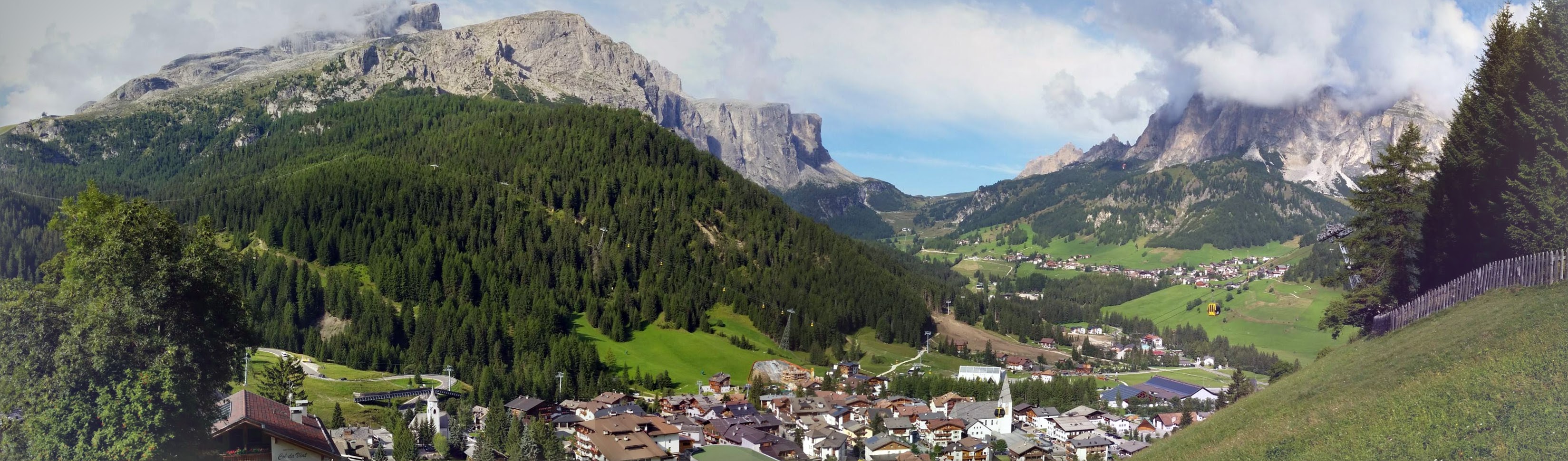 After a long drive, we arrived in Corvara, a small ski town, situated high in a valley at 1,568 meters (5,144 feet) and surrounded by soaring mountain peaks. The temperature hovered in the 50s, and the weather alternated between bright sun and misty clouds with a light rain shower in the evening.