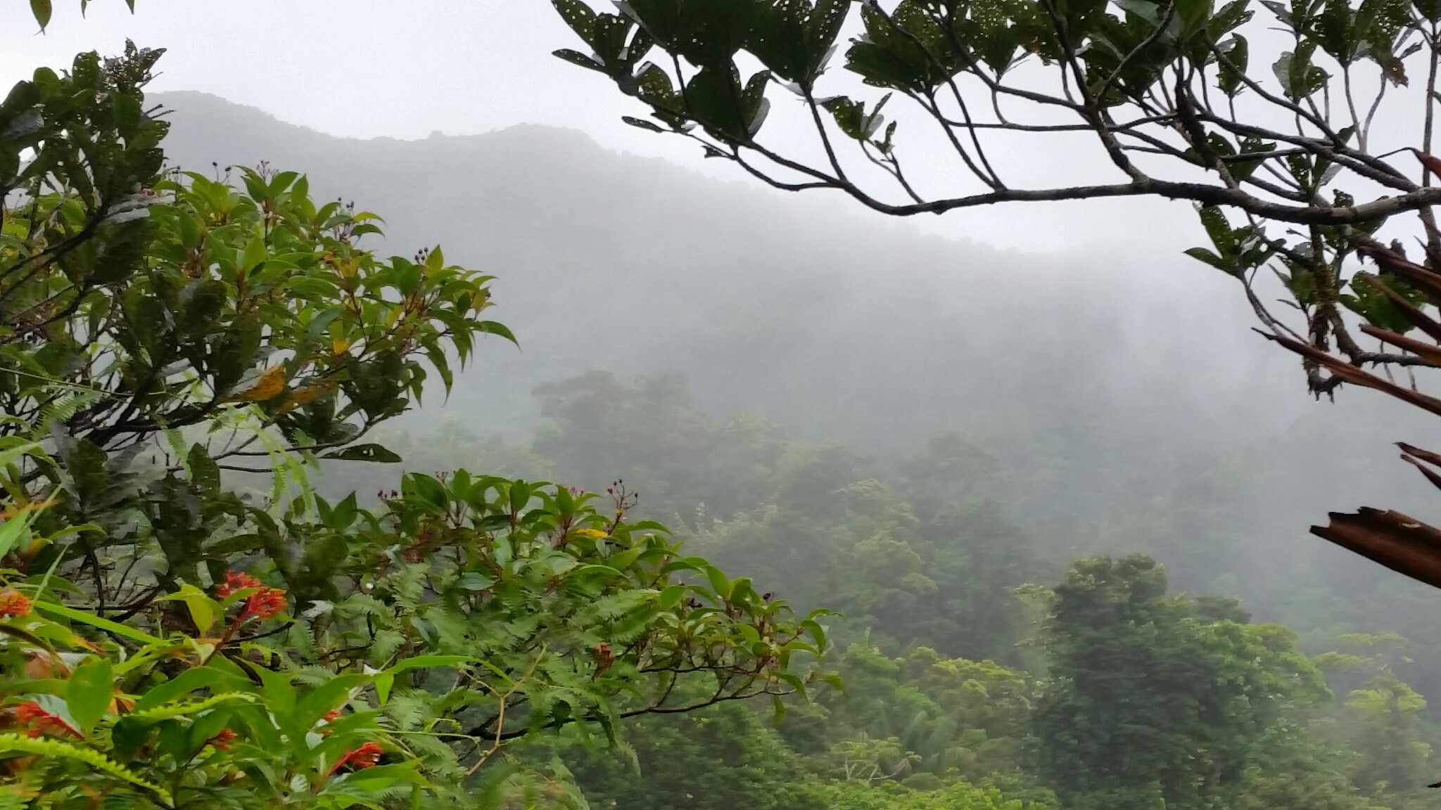 My son, daughter, and I were half-way up Morne Diablotins, at 1,380 meters (4,527 feet) the tallest peak in Dominica, a Caribbean island nation located north of Saint Lucia and the Grenadines.  My wife had chosen Dominica for our holiday break because of the temperate climate, unspoiled wilderness, and rugged landscape.  And indeed Dominica is the wildest and most rugged of the Caribbean isles, with precipitous mountains thrown up by recent volcanic activity, their ridges deeply incised by hundreds of streams.  Slopes are covered in jungle and cloaked in clouds.