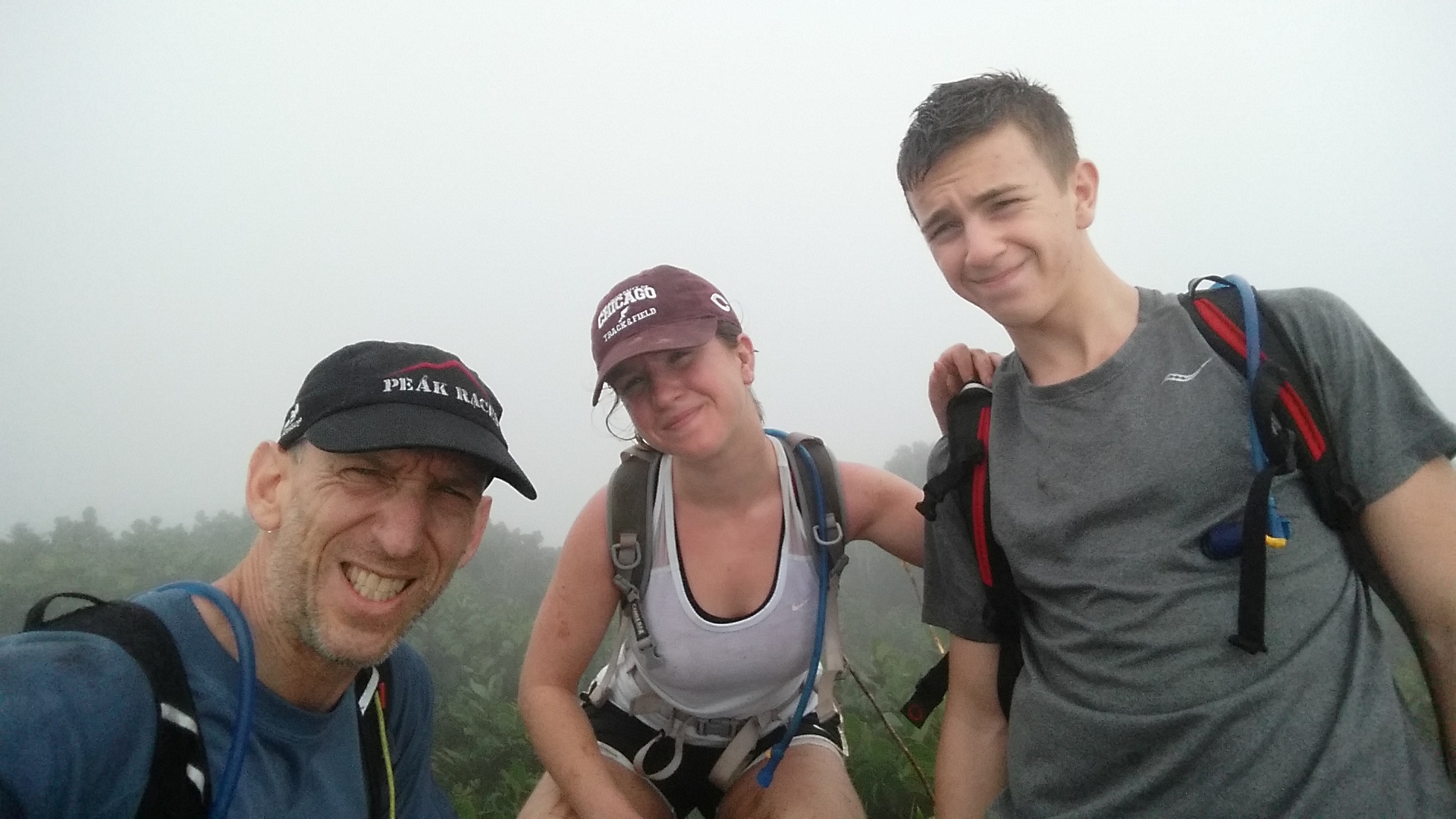 We hopped out of the car, grabbed packs, and scanned the misty heights, wondering what we’d encounter.  However, we weren’t flying totally blind.  I was carrying lots of technology: