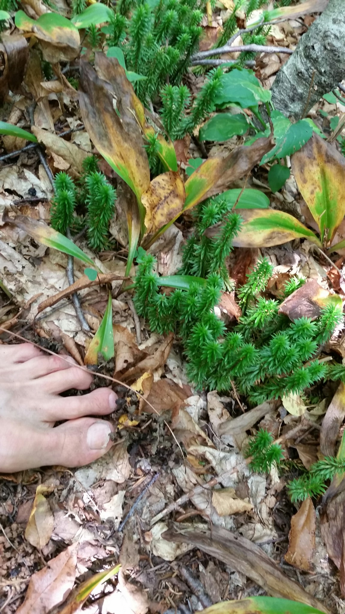 Underneath the trees, the forest floor was carpeted in shining club moss (Huperzia lucidula). During the Carboniferous period, some 360 million years ago, club moss relatives grew 100 feet tall. But over the years, they couldn’t keep up with flowering trees that propagated through seeds (rather than spores), and today the club moss is vastly reduced in stature. But it never gave up and continues to thrive to this day in the dim, cool, moist conditions of the boreal understory.