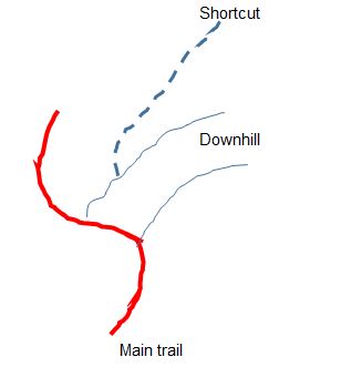 Within a few yards, I spotted a tunnel in the woods leading away from the main trail and recognized this as the shortcut’s end point.  To save some time, I figured I’d take it back, and also figure out where I had gone wrong before.