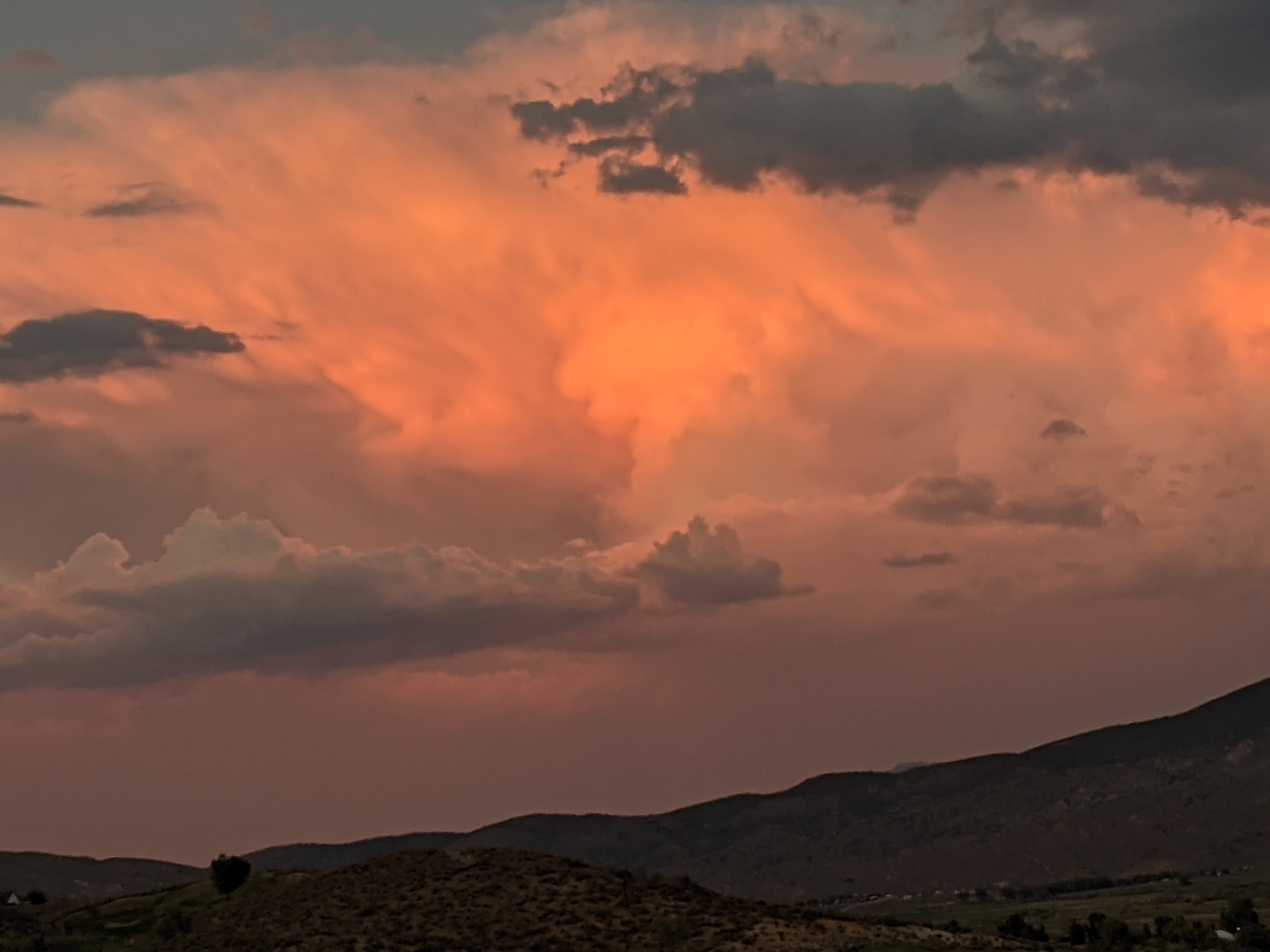 As I drove further south, the desert sky served up a final surprise – a big white cloud, which sprouted above the mountains like a giant fungus, gradually turned the color of a blood orange, until the dusky air in the narrow valley through which the highway snaked its way took on the tint of tomato soup. And then the weirdness faded into black and gray.