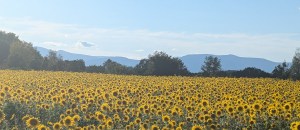 The long drive home took me across the Hudson River. Blinking into the rays of the setting sun, I saw the silhouette of the Catskill Mountains’ eastern rampart looming along the horizon, with a field of sunflowers glowing in the foreground. Acres upon acres of sunflowers – there must have been a million yellow face–like discs – more than I’d ever seen in one place.