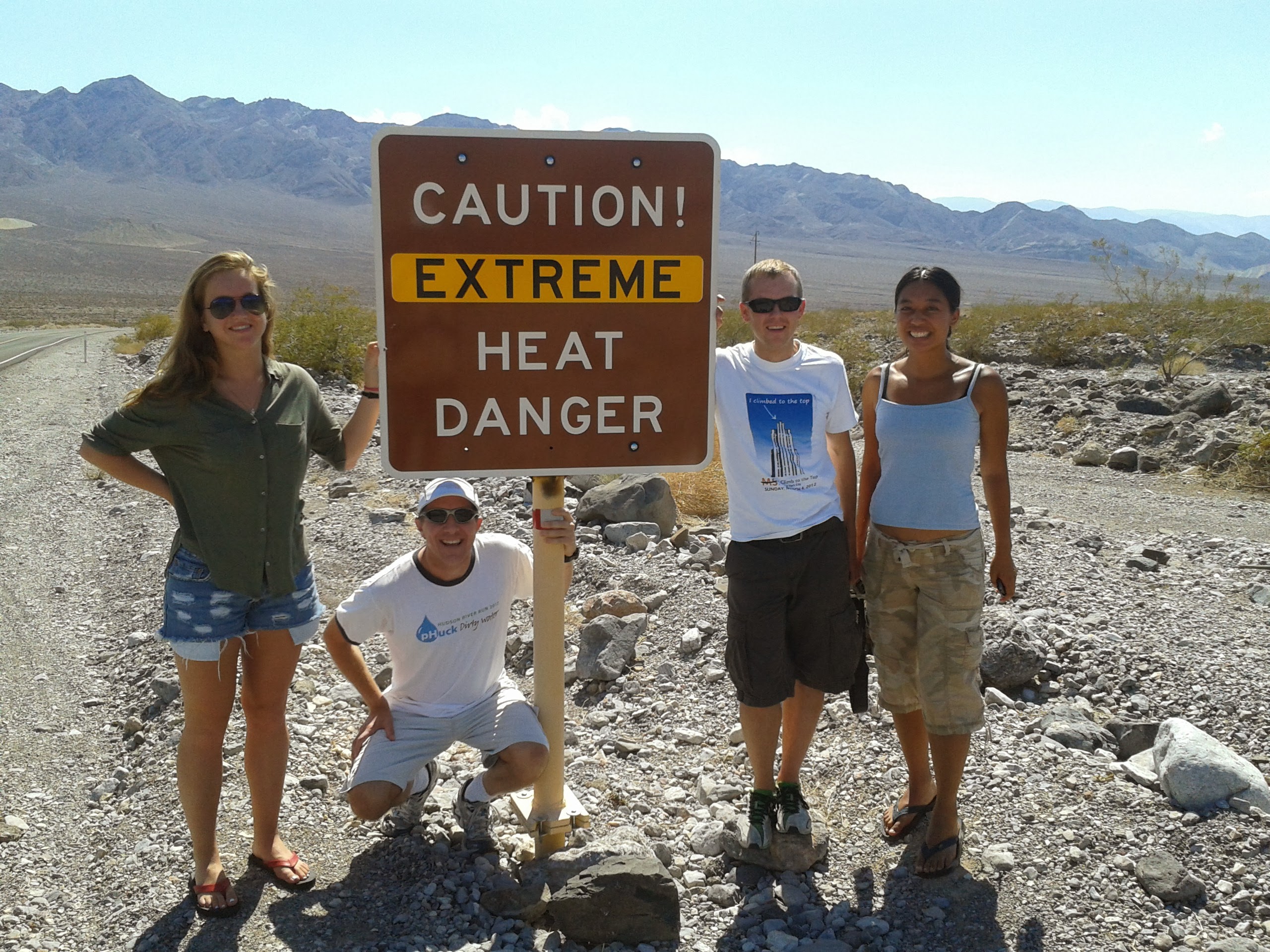 When I was running in the desert and the heat began to feel overwhelming, I slowed down. And never had a problem. I recall passing the Mesquite Dunes during the heat of late afternoon, plagued by a stiff headwind. Later I learned that a tourist had disembarked from a bus right there, wandered out into the dunes, and succumbed. I recall taking a hike in the canyons near Zabriskie Point, being careful to stray no more than one mile from my car. Later I learned that a movie actor with a role in the Harry Potter movies had perished from heatstroke in this area, just a few days earlier.