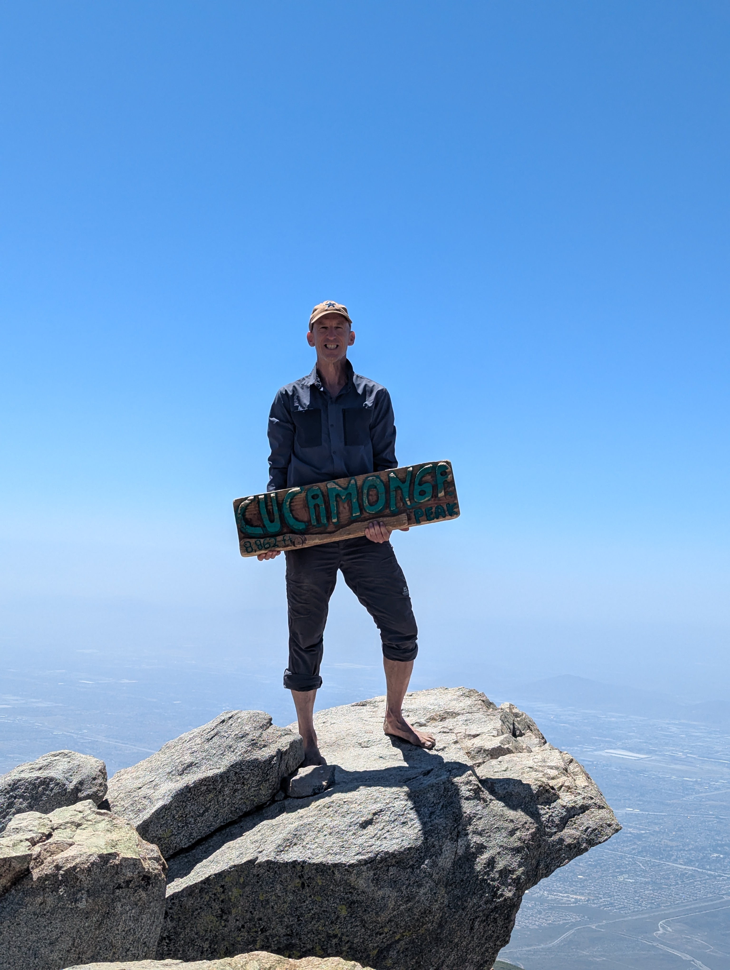 Bump — wheels down, LAX, right on schedule. Baggage secured, I’m on the bus to the rental car center and then barreling along the freeway to my cousin’s home to hang with his family for ten days. And climb some mountains, too – why, I have a long list of them.