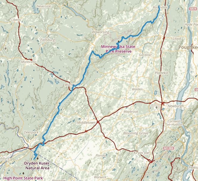 On Friday, July 3, 2015, my wife Sue kindly dropped me off at High Point State Park in New Jersey. It was a sparkling clear day. The plains of the Hudson Valley spread out to the east, while in the west the town of Port Jervis nestled in the confluence of the Neversink and Delaware Rivers. To the north, the Shawangunk Mountains reared like a series of breaking waves. My objective lay just beyond the last crest, some 74 miles distant.